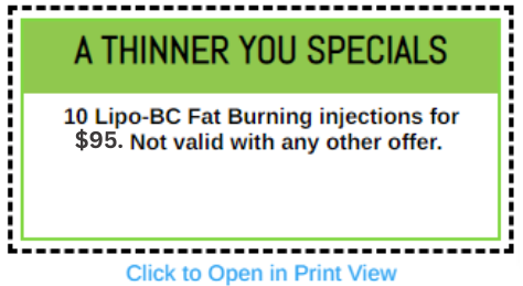 For more specials and promotions visit our Facebook. Printer out of ink? Simply take a current picture of the ad special on your mobile phone! For those who have already visited us, leave a Google+ Review to also receive a FREE Lipotropic BC injection. Can you take advantage of both social media offers? Well of course you can! Remember, refer 2 friends or relatives and receive 1 FREE WEEK of the basic program!